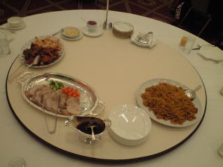 | (12:20) 東京最後の食事は「中華バイキング」〜です。 おいしい匂いで腹もグ〜です。 でも、B組さんがまだです。 A組さんはB組さんの到着を待ってます。いい子にして待ってます。 |