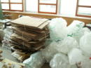 | 明日は「チャレンジ平中」の回収日です。 毎回、昼休みにトラックに運んでいましたが、業者さんの都合で、朝のうちに出しておくことになりました。今日のうちに技術室に運びましたが、このものすごい量を見てください。 夏で、ペットボトルの消費も多かったようですが、何より、保護者の方々、生徒の皆さん、地域の皆さんのご理解とご協力のおかげです。 空き瓶回収での収益金も「チャレンジ平中」に入ります。本当にありがとうございます。 |