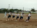 | 朝から雨が降ったりやんだりのはっきりしない天気でしたが、平中生のパワーで雨を吹き飛ばしました。 練習が始まり、競技練習になってくると、学級担任の先生方もだんだんヒートアップしてきます。 組対抗で行う「ハリケーン」では、コーンの回り方や足きりの仕方などの秘策を伝授。 学級対抗の「団結ジャンプ」では、縄の回し方やリズムの取り方など担任の先生も熱血指導。 |