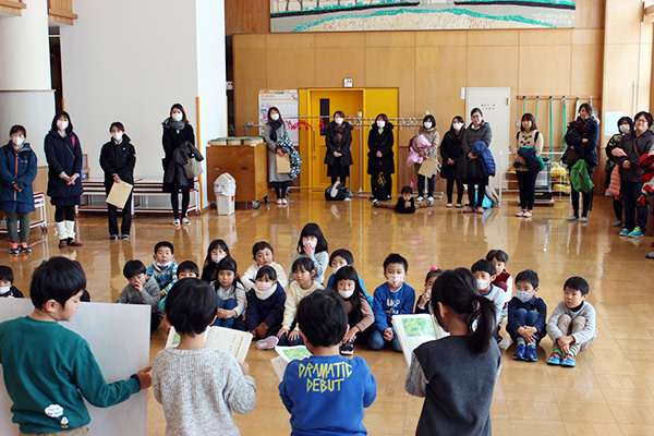 1年生が、園児の保護者さんが見守る中、学習の発表をしました。