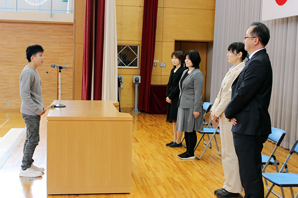 4名の先生方よろしくお願いします。児童代表歓迎の言葉。