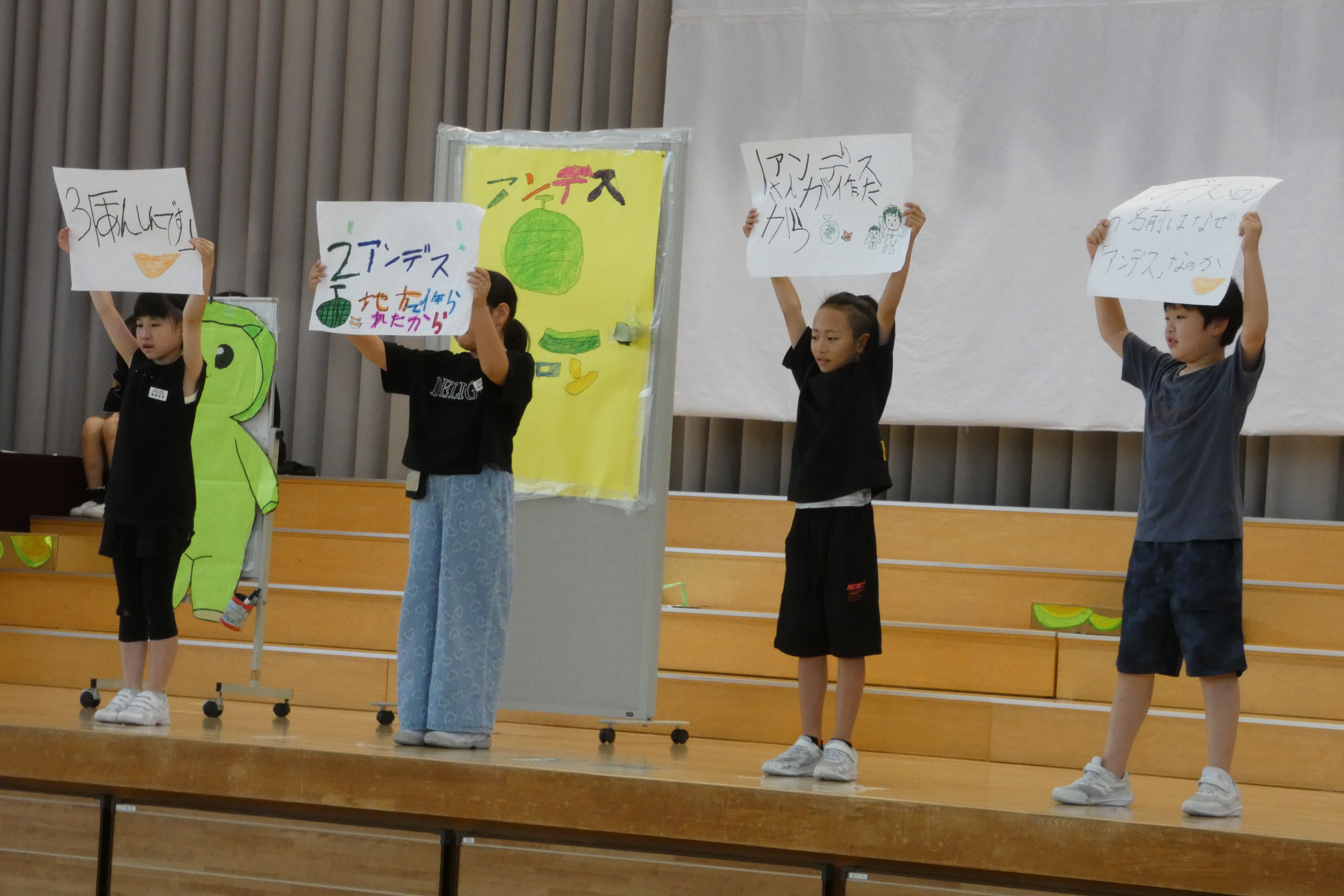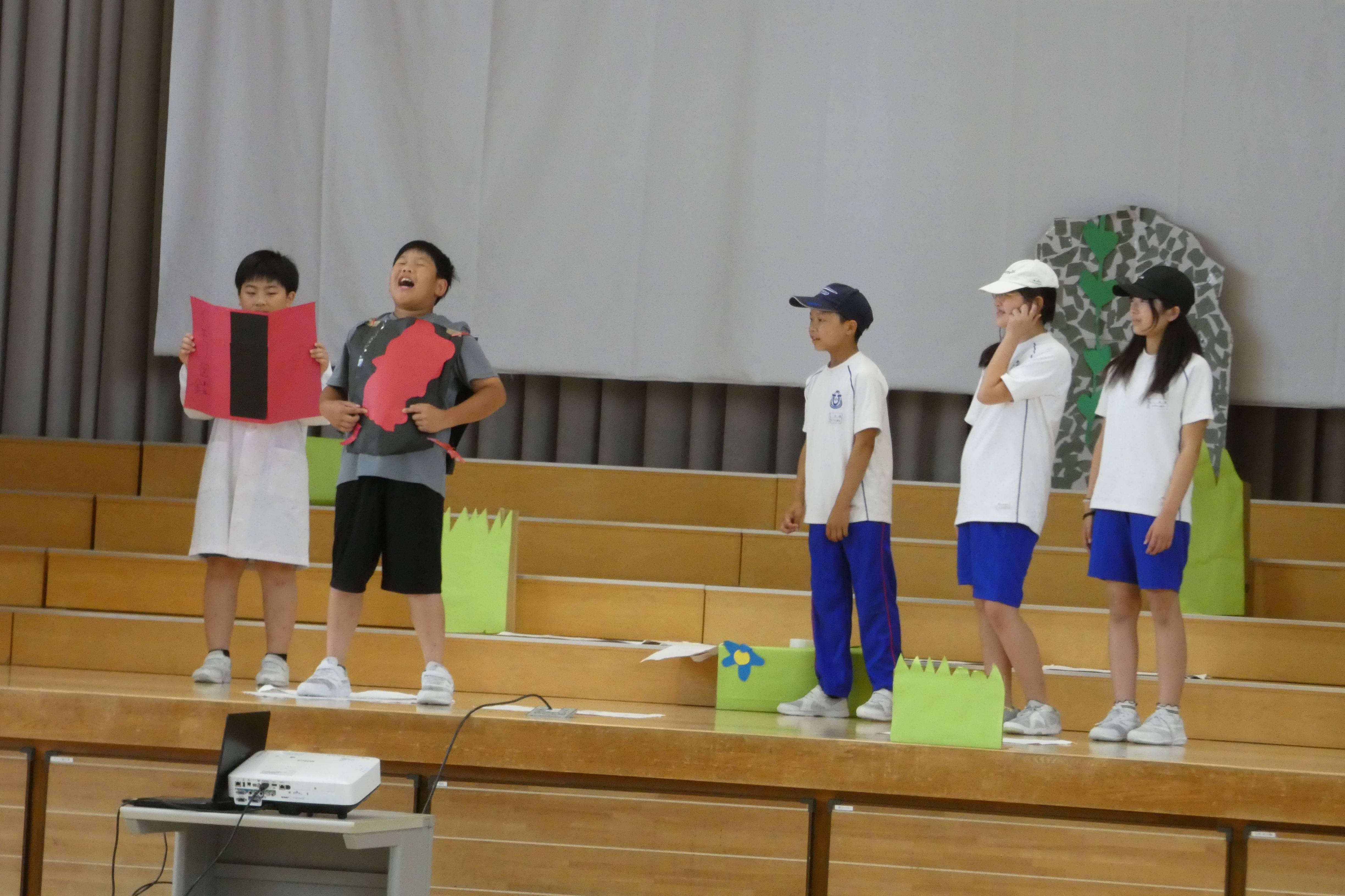今年度も朝会の時間に学習発表を行いました。 どの学年も、それまで学習したことを存分に活かし、工夫を凝らして発表しました。 【6月25日 3年学年発表】 【7月9日 5年学年発表】 【9月10日 2年学年発表】 【10月29日 1年学年発表】 【11月5日 4年学年発表】 【12月10日 6年学年発表】