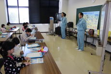 | 社会の学習で「ごみ処理施設」を見学しました。 「リサイクルセンター」や「最終処分場」も見せてもらい、ごみの出し方も教えていただきました。 |