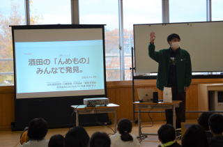 | ●11月29日(火) 今年度、5年生は、酒田の食をテーマに活動しています。今日は、合同会社COCOSATO代表であり、酒田市八幡地域・大沢地区の集落支援員としてご活躍の阿部さんにおいでいただき、酒田の食の魅力とともに、その魅力の発信のしかたについてお話していただきました。 |