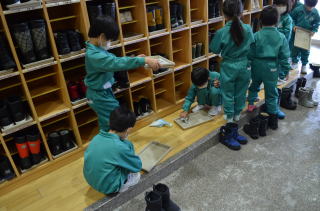 | ●12月20日(火) 子ども達は、休み時間、真っ白になったグラウンドに元気に飛び出し、雪遊びを楽しんでいます。いよいよ2学期の終業式が今週木曜日に迫り、昇降口の靴箱の掃除に取り組む姿が見られます。今朝は、1年2組の子ども達が一生懸命にきれいにしていました。 |