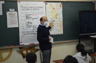 | 11月10日(水) 今日は、酒田市防災教育アドバイザーの村山先生をお招きして、4年1組で防災にかかわる授業研究を行いました。自分の考えたマイ・タイムラインと友達のものを比べながら、災害に備えての適切な行動を考える学習でしたが、子ども達は、自分や家族の命を守るために大切なことをたくさん学ぶことができたようです。また、放課後には、本校の教員が、村山先生のワークショップを通して、率先避難者を育てていくことの大切さについて研修しました。 |