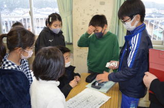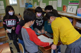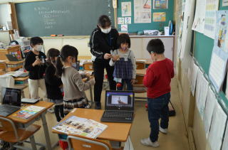 | 12月6日(月) 4日(土)に「鳥海山・飛島ジオパーク学習研究発表会」が遊佐町で開催され、本校の5年生の男子2名が、飛島いきいき体験スクールで学んだことについて、タブレットPCを使いながら堂々と発表しました。 今日は、3年生が、総合的な学習の時間に、自分達で収穫した米とサツマイモの販売に向けた話し合いと準備にグループで協力して取り組んでいました。 |