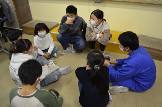 | 12月7日(火) 12月16日(木)に児童会企画行事があり、子ども達が話し合って「宮小クイズラリー」を行うことになりました。今年度初めて取り組む行事ですが、にこにこ班の絆を深めることを子ども達のめあてにして、準備を進めています。今日のロング昼休みに、それぞれのにこにこ班でクイズを考えましたが、どの班も1年生から6年生まで楽しそうに話し合いに参加していました。 |