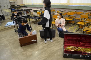 | 10月27日(水) 今日の放課後、吹奏楽クラブの練習がありました。子ども達はこれまでも休み時間や家庭などで自主練習に取り組んで来ており、今日の練習も一生懸命でした。今年度もコロナ禍ということで、地区で演奏するような機会はありませんが、12月1日(水)の朝会で全校児童の前で演奏する予定です。今からとても楽しみです。 |
