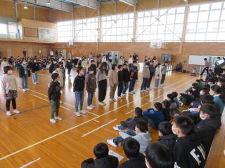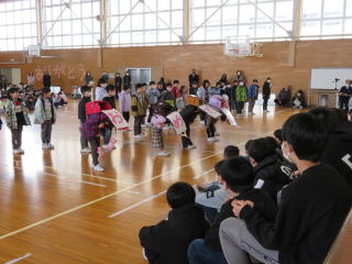 | 1月25日 川南小学校交流会 6小学校の6年生が本校で交流会を行いました。 中学校進学に向けて今年始まった取り組みです。 児童代表の会議を経て各校で準備分担し、楽しい交流会になりました。 |