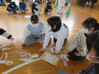 | 1月15日 長さを体感 2年生算数の学習です。 実際に手で触れたり、作業したりして体で感じながら学習することは、 大切な学びになります。 特に低学年ほど様々な体験を通して身につけて欲しいことです。 |